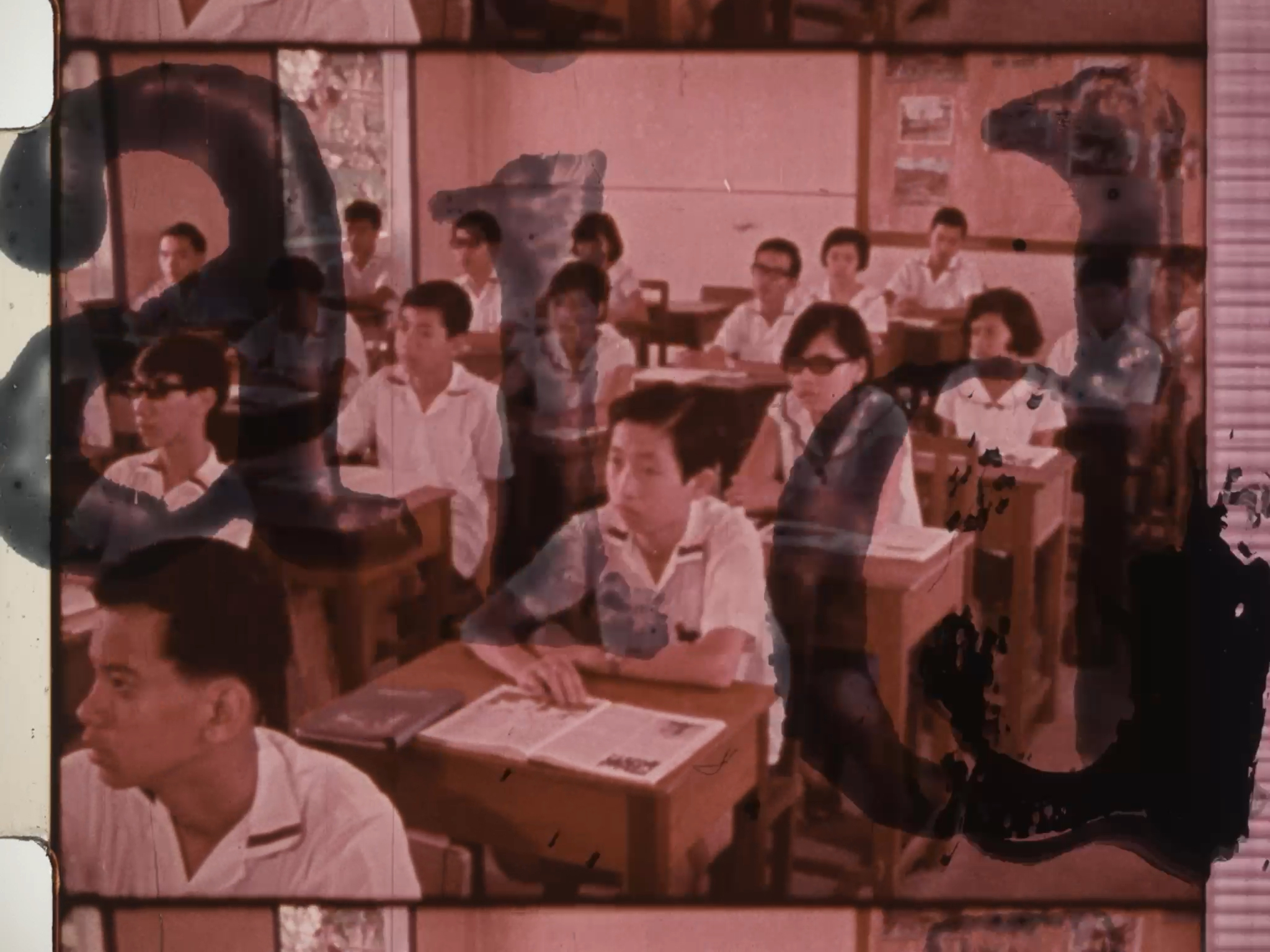 Direct animation on found 16mm film, scanned to digital, sound